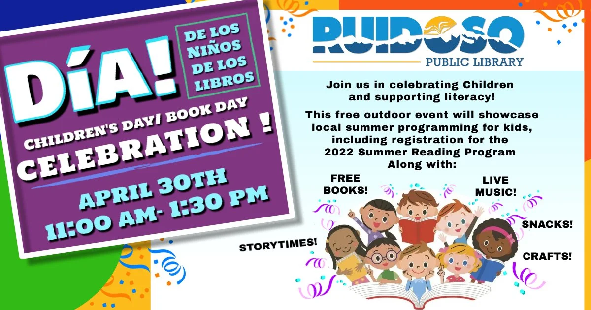 Save the date! On April 30th, the Ruidoso Public Library will be hosting its first annual Día De Los Niños Dia, de Los Libros (Day of the Children/Day of the Books) event.